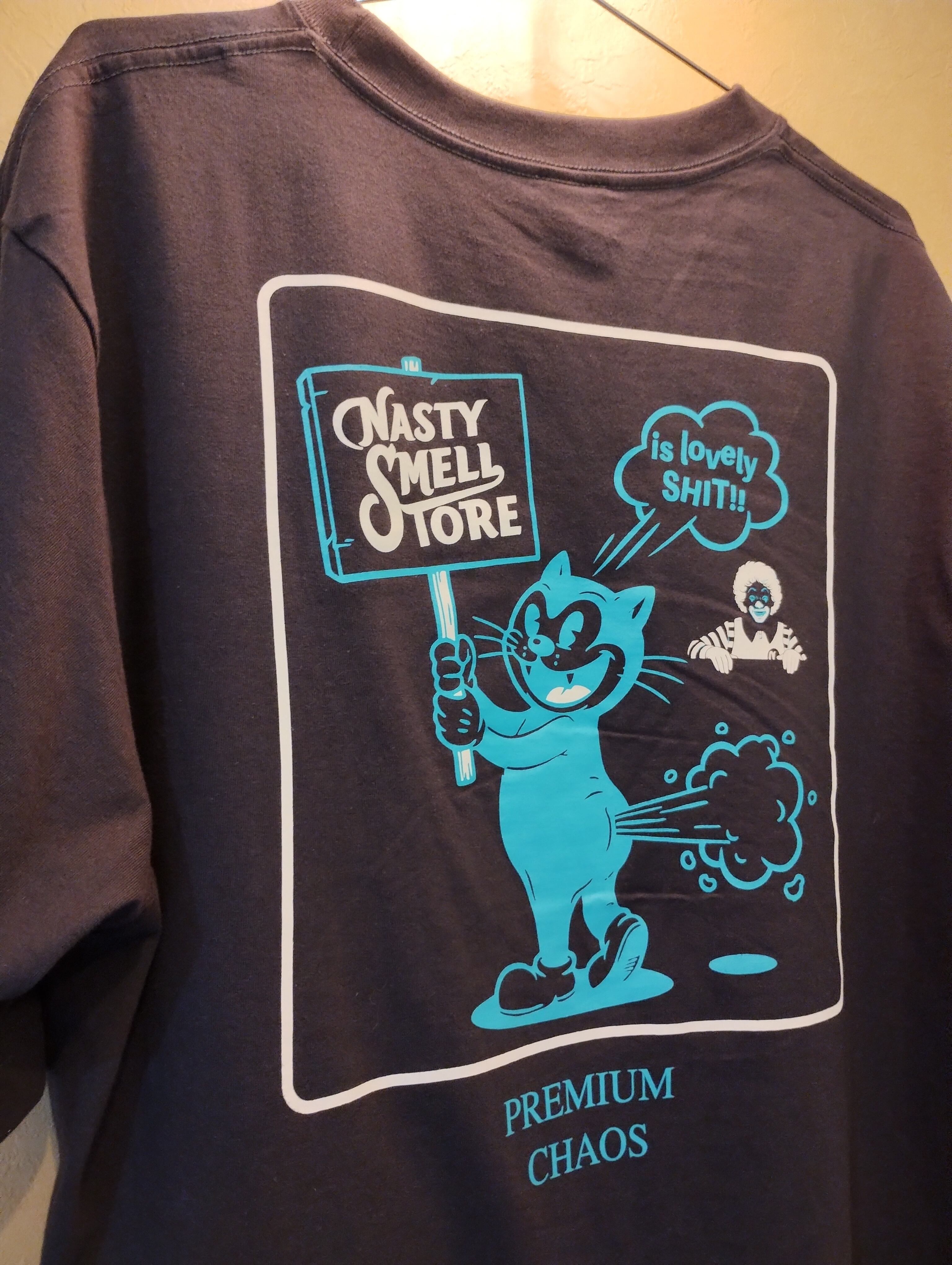 猫が笑って、看板を掲げて、