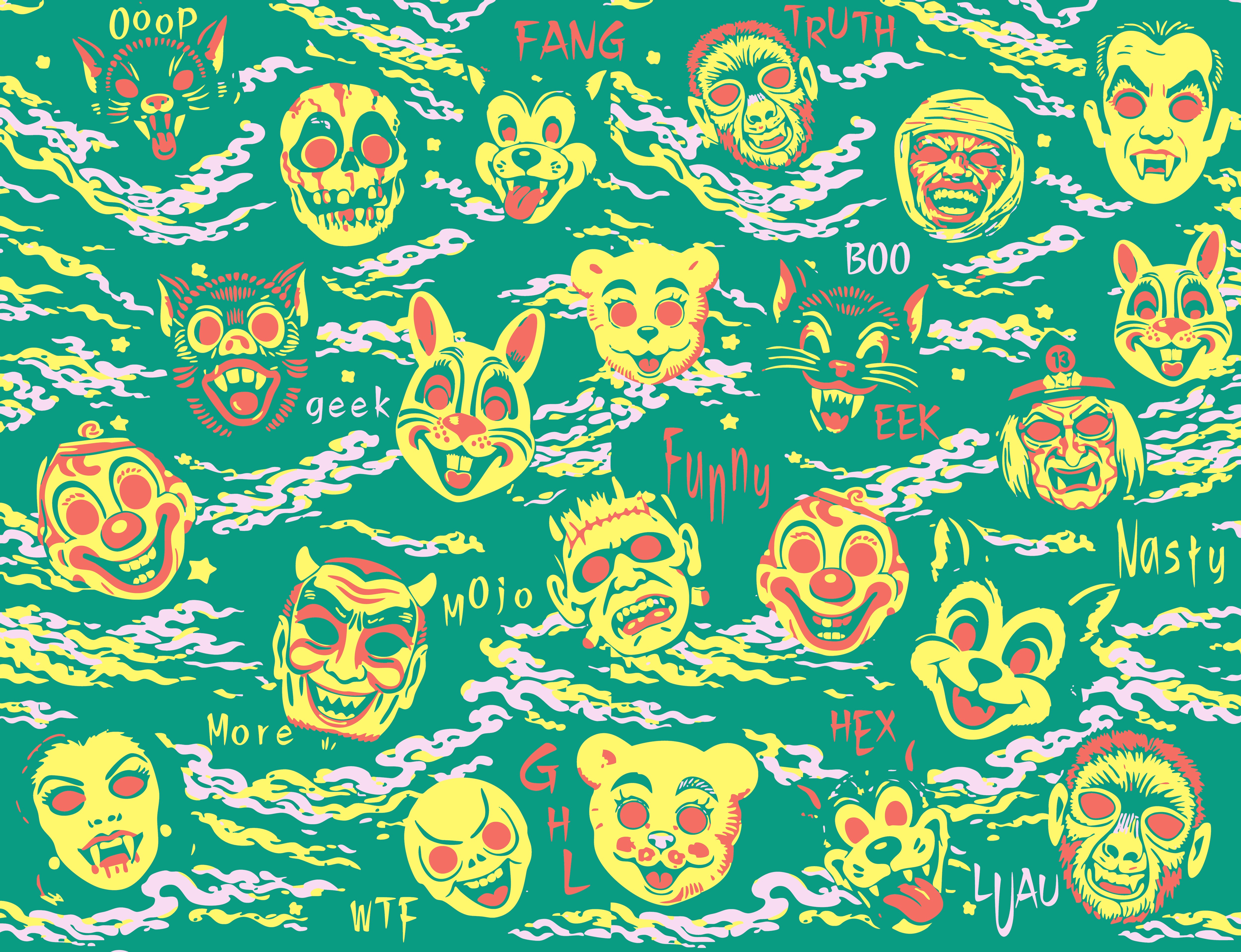 スカル、ピエロ、モンスターと愉快な動物たち。