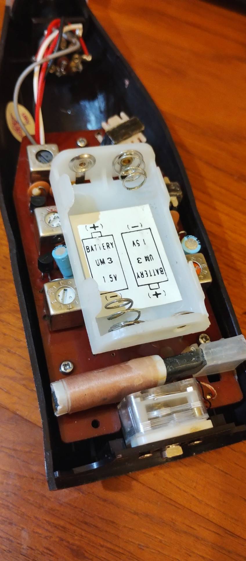 コイルと基盤をクリーニングしているので単三電池2本で動作確認OK。